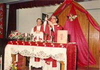 教區早於1988年開始跟政府部門商討買地建堂一事。政府最初打算把魷魚灣村消防宿舍旁邊的土地賣給教區,但該處交通不便,不為教區接受。 後來,政府建議出售安寧花園附近的土地(即常寧路新聖堂現址)予教區,豈料中途又出現變數。 政府賣地突然變卦 「忽然收到政府來信,指這個批地計劃多數不能成事,要另找一塊土地,但又沒有說明原因……聽說可能因為那塊土地鄰近地鐵站,改賣作建屋用途的話,政府可以多賺不少。」馬神父說,教區前後已花了不少時間買地,並已按那塊土地的位置等做準備,一旦政府決定不賣,建堂計劃就要從頭再來。 為了盡速建堂,馬神父再次與政府磋商。到1998年,政府終於按照原定計劃,將位於坑口地鐵站附近,約三千平方米的土地賣給教區,興建可容納七百人的新聖堂。 前後歷時十年的買地問題得到解決,但不表示建堂的計劃就此一帆風順。天主給了我們堂區另一個新考驗,就是新聖堂的設計。 擄馬神父說,由於早已預計聖堂在香港回歸後落成,因此,教友希望興建一所富中國特色的上主庭院。接任主任司鐸的顧神父亦說,由教區代表和堂區代表組成的建築委員會初步投票選出的兩個設計之一,就是一所中式庭園的設計,但最後教區卻選用了第三個設計,興建現在的新聖堂。